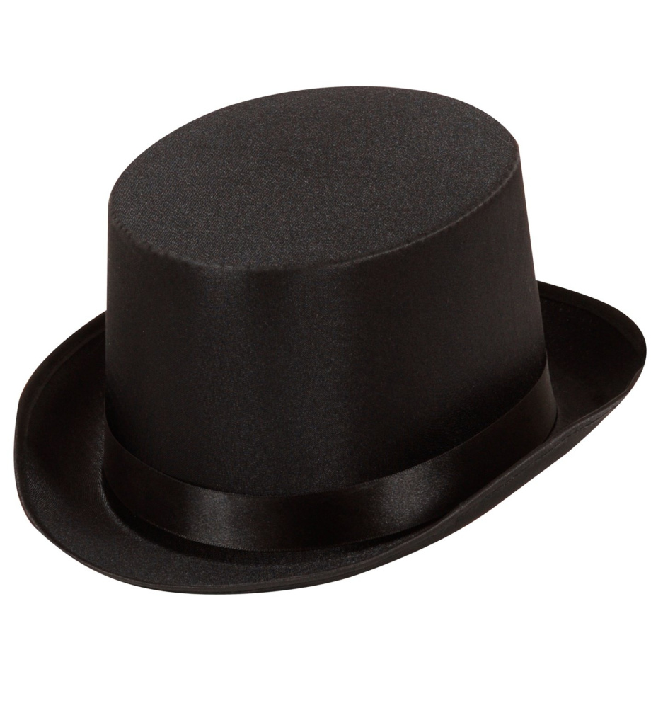 krásný klobouk cylindr potažený saténem prošitý a olemovaný ze stužkou od společnosti Widmann.