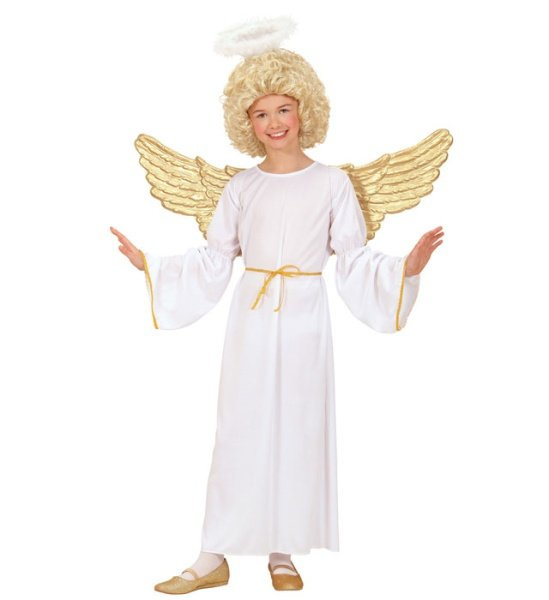 Krásný karnevalový kostým pro děti se svatozáří a opaskem. Karnevalový kostým Anděl obsahuje dlouhé bílé šaty a svatozář. Karnevalové kostýmy pro děti značky Widmann. Křídla nejsou součástí kostýmu.