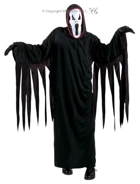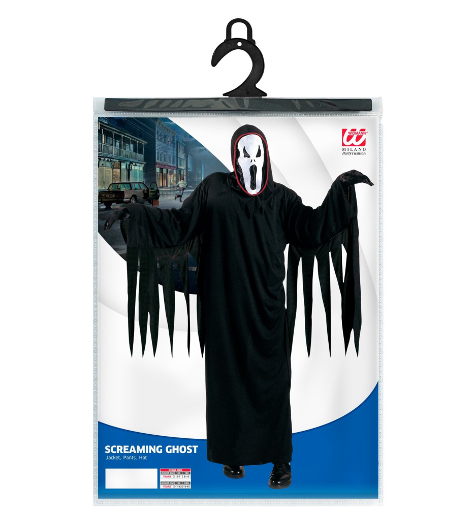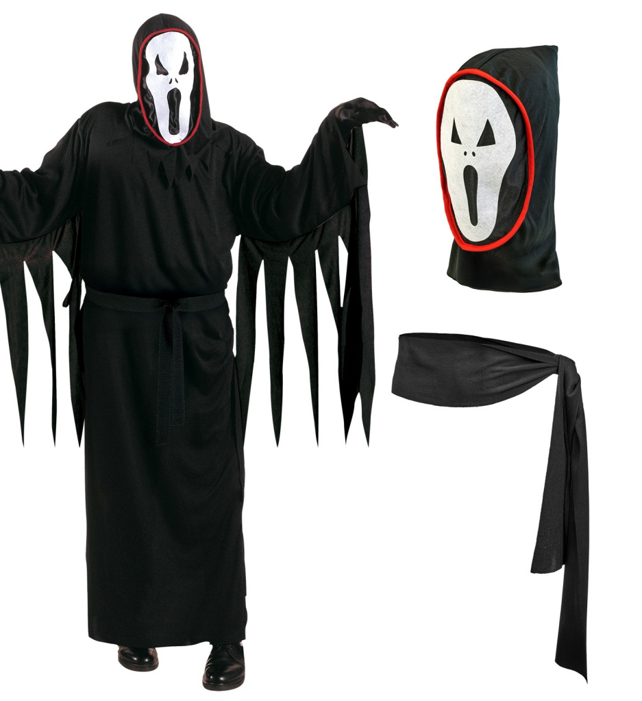 Hororrový kostým pro děti na motivy filmu Vřístot. Velmi oblíbený kostým mezi kluky, kteří mají rádi napětí. Součástí kostýmu je dlouhé roucho s rukávy, látkový opasek a plátěná maska s kapucí. Karnevalové kostýmy pro děti značky Widmann. Tabulka velikostí
