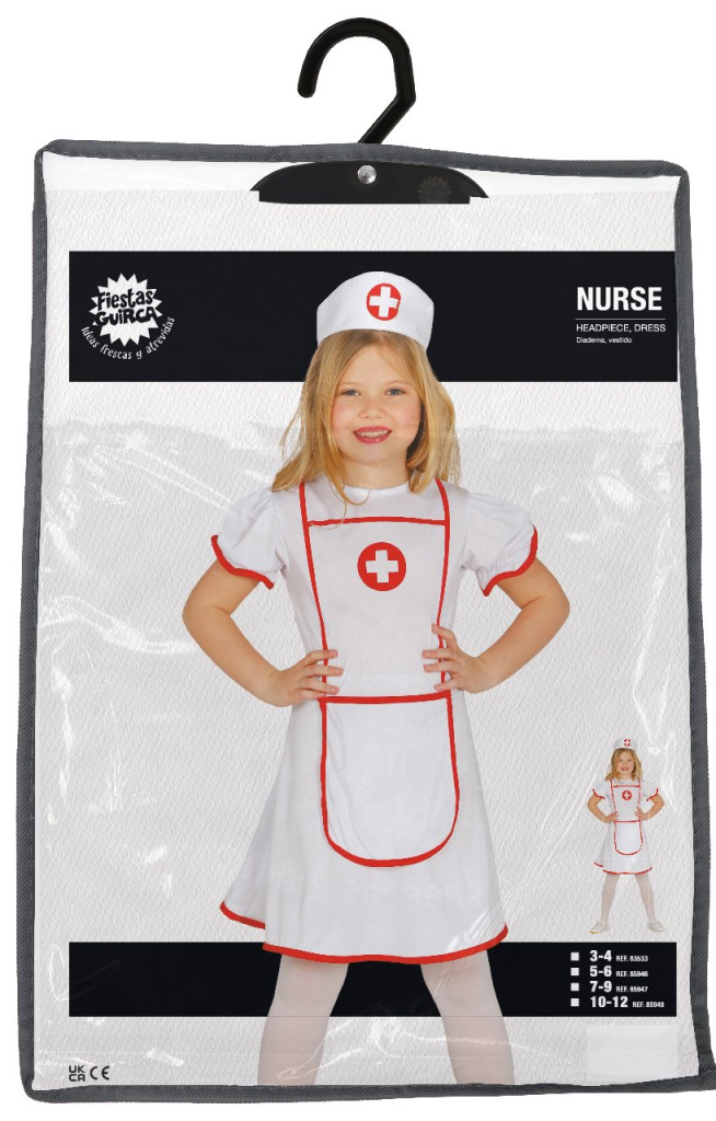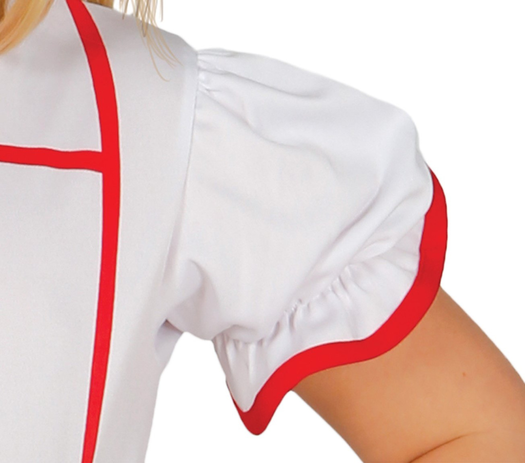 karnevalový kostým pro děti. Součástí tohoto kostýmu jsou bílé šatičky a čepice. Jako doplněk doporučujeme lékařský stetoskop a injekční stříkačku (nejsou součástí kostýmu).