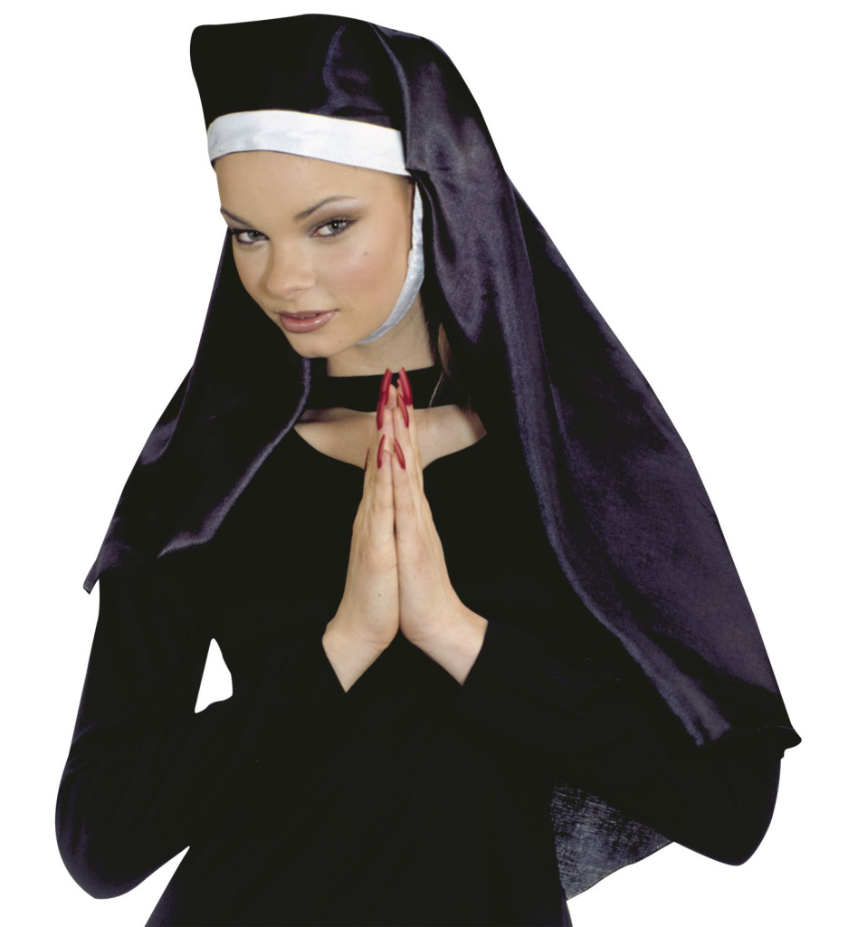Doplňte svůj karnevalový nebo halloweenský převlek o autentickou pokrývku hlavy jeptišky, která okamžitě navodí správnou atmosféru. Plachetka v černé barvě je doplněna o bílou širokou stuhu, která krásně rámuje obličej a je zakončena suchým zipem, který se upevňuje pod krkem. Vyrobeno z lehkého, příjemného materiálu, který se snadno nosí i po celý večer. Pokrývka je ideální ke kostýmu jeptiška, řádová sestra, řeholnice. Vhodné na karneval, maškarní, večírek, halloween party nebo masopustní průvod. Při použítí vhodného krvavého make-upu lze vytvořit zombie jeptišku na halloween párty.