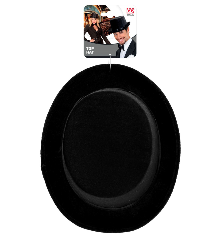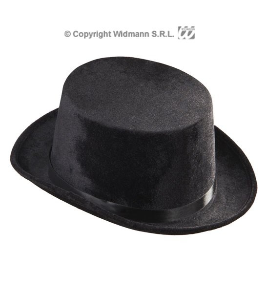 Klobouk Cylindr černý semišový Krásný semišový lesklý černý cylindr pro dospělé, který je ideální ke kostýmu elegám, gentleman nebo upír či k jinému vhodnému kostýmu. Více informací