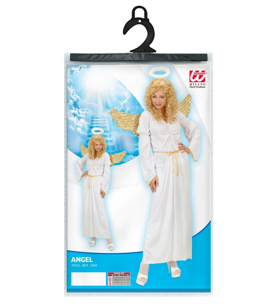 Krásný karnevalový kostým Anděl pro dospělé dámy. Kostým Anděl obsahuje dlouhé šaty a svatozář. Karnevalové kostýmy pro dospělé značky Widmann. Křídla nejsou součástí kostýmu.